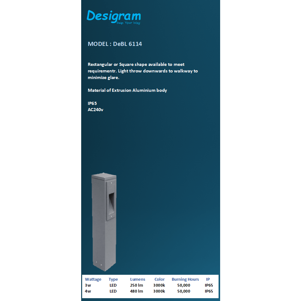 Rectangular or Square shape available to meet requirement. Light throw downwards to walkway to minimize glare.