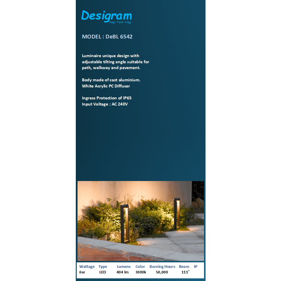 Luminaire unique design with adjustable tilting angle suitable for path, walkway and pavement.